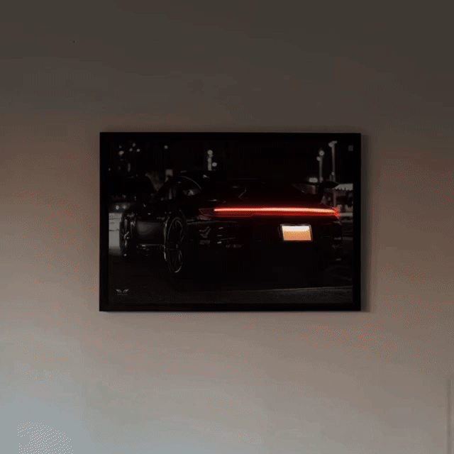 This unique LED poster showcases the Porsche 911 GT2 RS Back Edition Portrait A2, highlighting its style and power through vivid, glowing light. Perfect for bedrooms, garages, and living spaces, it's more than art – it's an illuminated homage to Car passion. A powerful centerpiece for car lovers who appreciate detail and design. A blend of decor and emotion. Handmade and powered by USB-C, it brings both light and legacy to your wall.